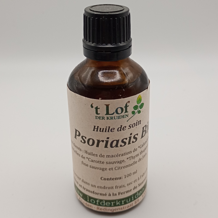 De biologische verzorgingsolie Psoriasis van Ferme Saussac is speciaal samengesteld om de gevoelige, droge en geïrriteerde huid te verzachten en te herstellen. De basis van goudsbloemmaceraat (Calendula officinalis) staat bekend om zijn kalmerende, regenererende en herstellende werking, ideaal bij een ruwe of schilferige huid.
