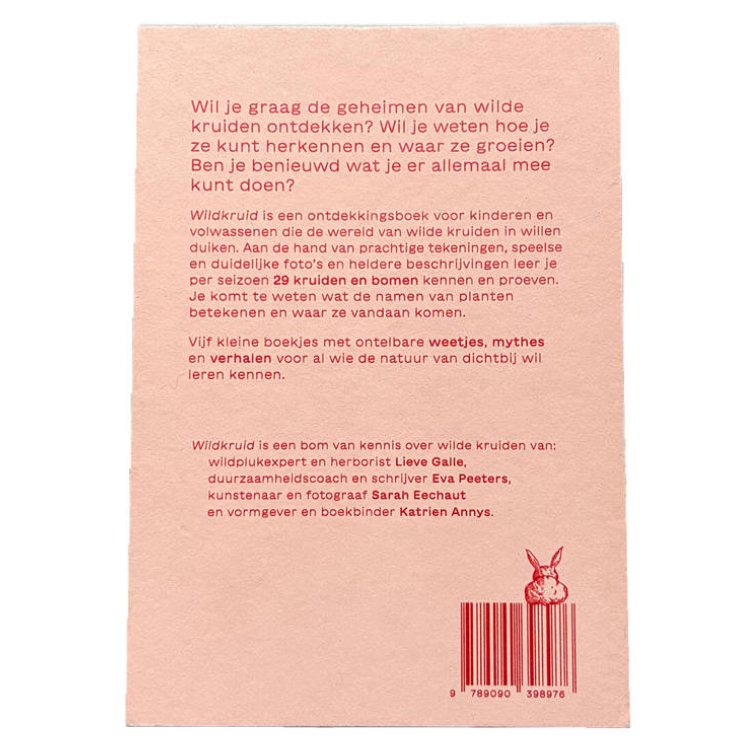 Wildkruid is een bom van kennis over wilde kruiden van wildplukexpert en herborist Lieve Galle, duurzaamheidscoach en schrijver Eva Peeters, kunstenaar en fotograaf Sarah Eechaut en vormgever en boekbinder Katrien Annys.
