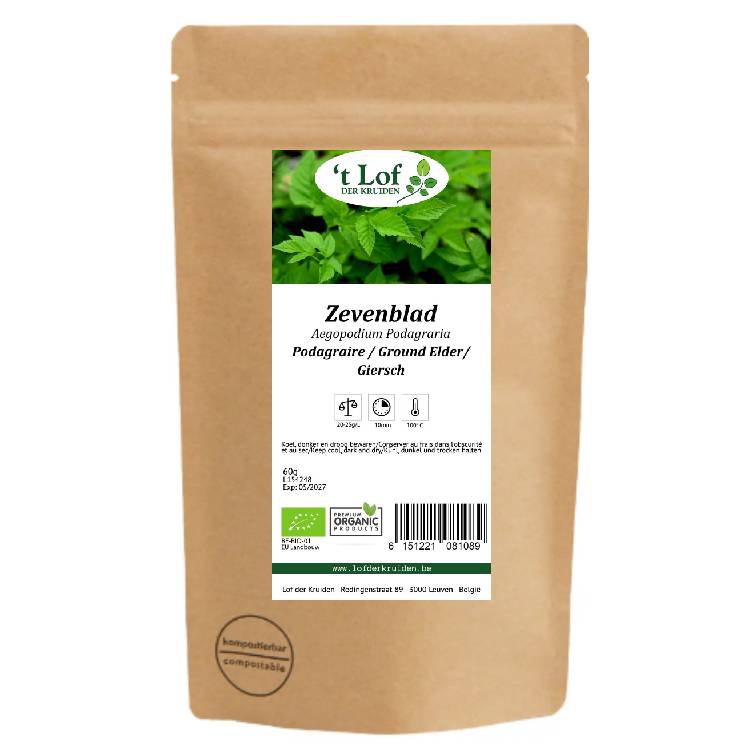 Zevenblad (Aegopodium podagraria) is een meerjarige plant die haar naam dankt aan haar veerdelig blad meestal bestaande uit 5 tot 7 deelblaadjes. Zevenblad groeit op heel wat plekken, je vindt de plant in beschaduwde wegbermen, heggen, tuinen, sloten akkerranden, … op vochtige voedselrijke grond. Het kruid bevat tal van vitaminen en mineralen, zoals kalium, calcium, magnesium, ijzer, kiezelzuur, vitamine A, C en E. Zevenblad werd in de volksgeneeskunde gebruikt tegen reuma en jicht.